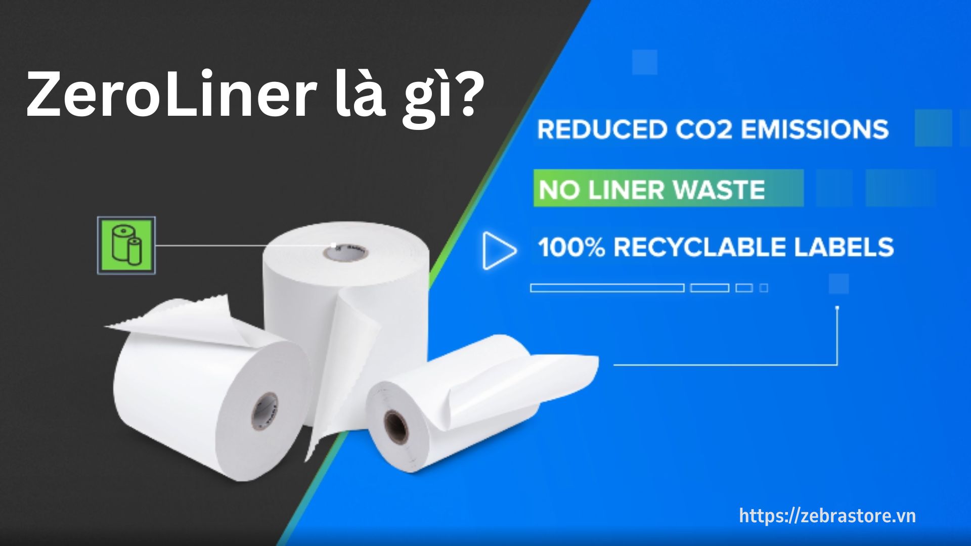 ZeroLiner là giải pháp in tem nhãn linerless – tức tem không có lớp giấy lót phía sau. Thay vì phải bóc bỏ giấy lót sau khi in, tem ZeroLiner được in và dán trực tiếp, giúp đơn giản hóa quy trình và loại bỏ hoàn toàn lượng rác thải từ giấy lót.